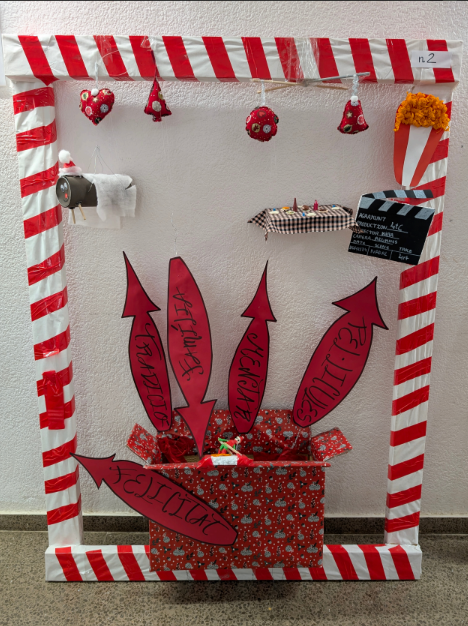 L’alumnat ha dissenyat i creat muntatges artístics amb un marc de fusta de 1,20x1,50m i materials variats, expressant la seva visió crítica del Nadal. El procés ha implicat compartir idees, fer esbossos, provar combinacions i resoldre dificultats tècniques i expressives.. El resultat final s’ha exposat al centre, creant un mosaic col·lectiu de mirades diverses.