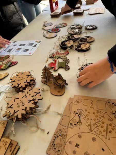 A partir dels dissenys creats pels alumnes de 6è, s’ha utilitzat el maquinari (sobretot la talladora làser) per fer-los realitat. Aquests productes s’han venut en una parada el dia del concert de Nadal de l’escola, per recaptar diners i fer la nostra aportació a la fundació.