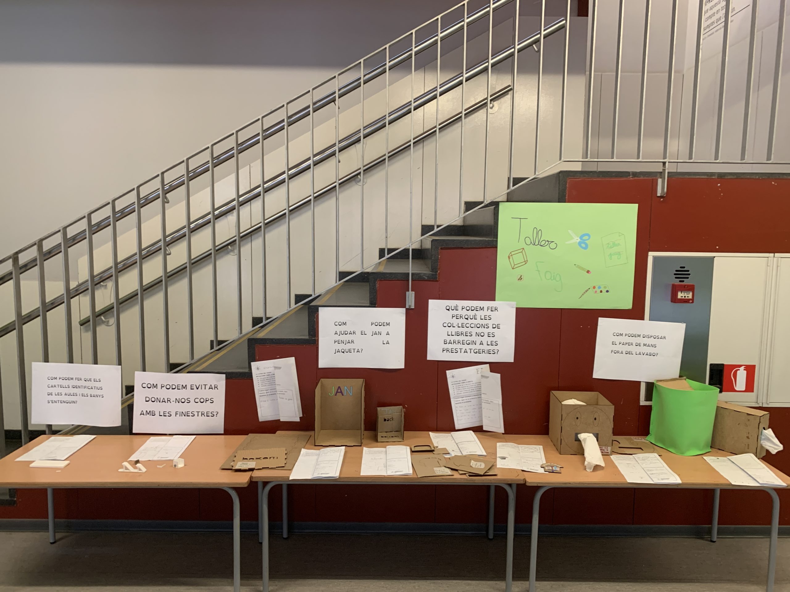 L’alumnat ha començat detectant problemes reals de l’escola amb una cacera del tresor i, en equips, ha triat un repte per transformar-lo amb un artefacte funcional. Han experimentat amb materials, compartit idees, fet esbossos, i revisat les seves propostes a partir de la crítica constructiva. Amb eines digitals i manuals han prototipat solucions, documentant errors i aprenentatges. El procés ha culminat amb una exposició dels projectes i una coavaluació del treball en equip.